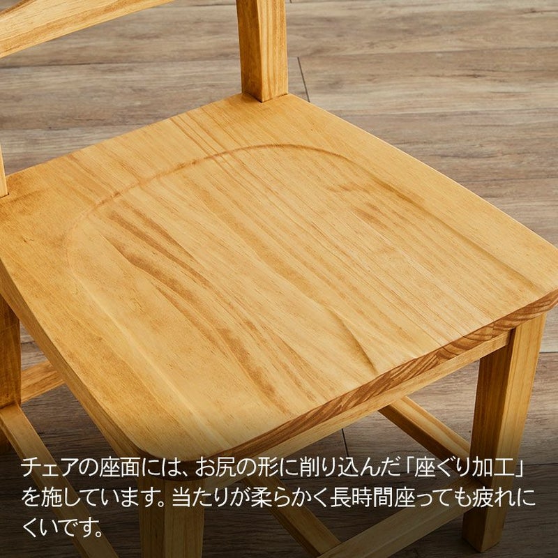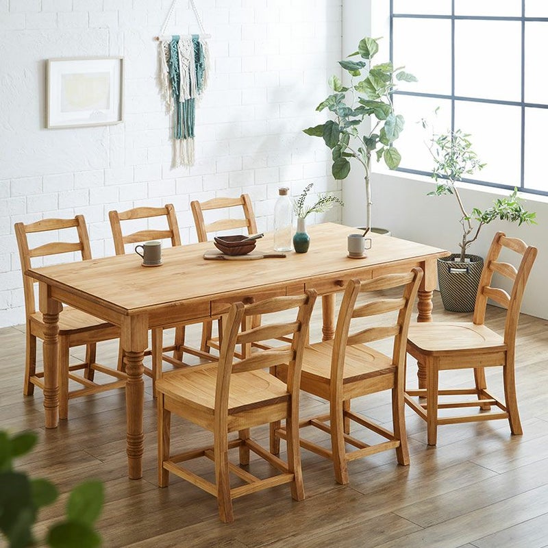 パイン無垢材をふんだんに使用した、カントリーテイストのダイニングセット。