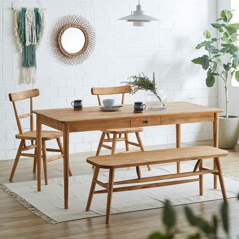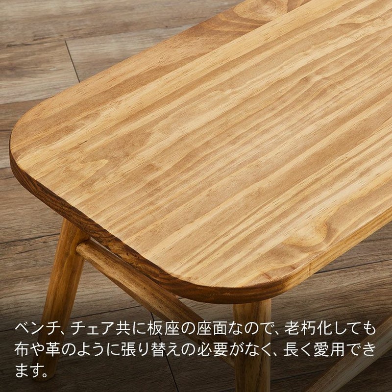 ●チェア、ベンチ共に板座の座面なので、老朽化しても布や革のように張り替えの必要がなく、長く愛用できます。