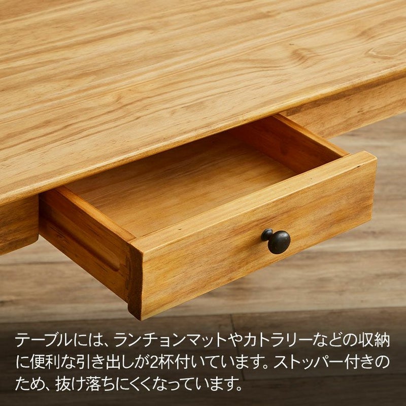 ●ランチョンマットやカトラリー、テーブルまわりの小物収納に便利な引き出しが2杯付いています。(前後に各1杯ずつ)