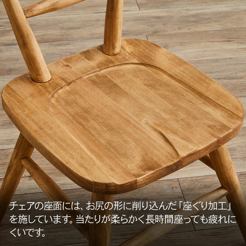 ●チェアの座面には、お尻の形に削り込んだ「座ぐり加工」を施してるので、当たりが柔らかく長時間座っても疲れにくいです。