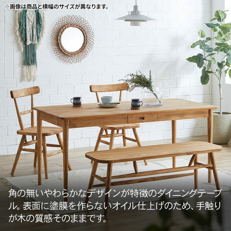 角の無いやわらかなデザインが特徴のダイニングテーブル。