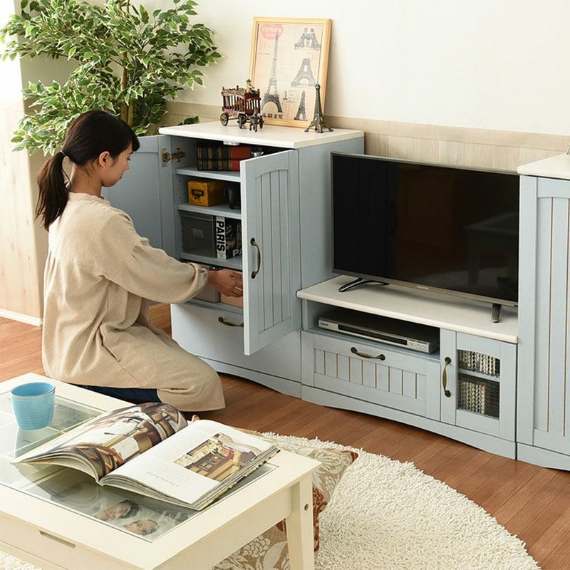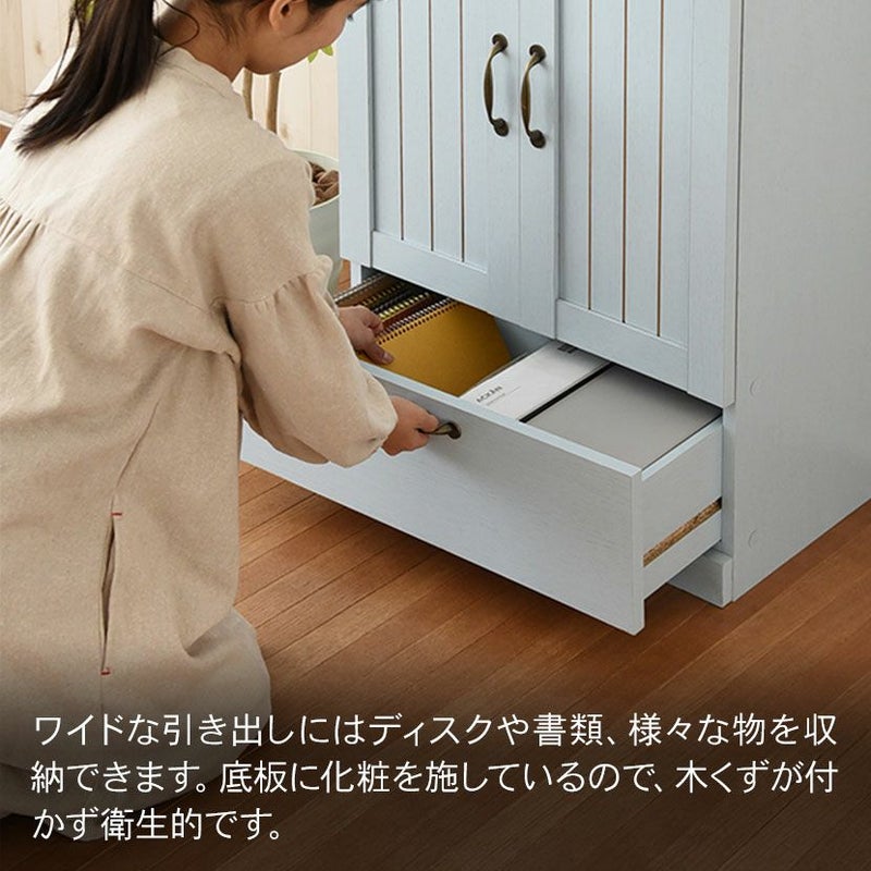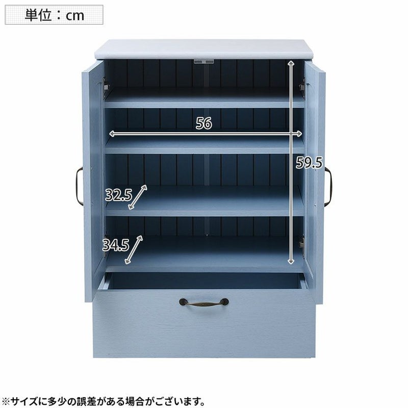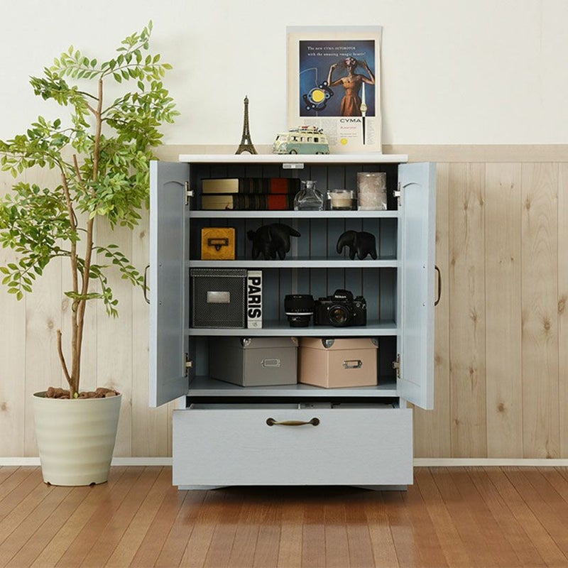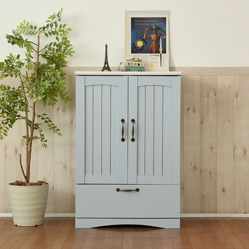 幅60.5cm 木製 カップボード 扉付き コンセント付き 引出し付き コンパクト 収納棚 キッチンボード キッチン収納 食器棚 フレンチカントリー おしゃれ ブルー 送料無料 送料無料 ¥ 22,390 税込