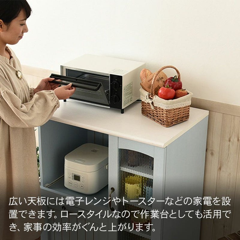 広い天板には電子レンジやトースターなどの家電を設置できます。