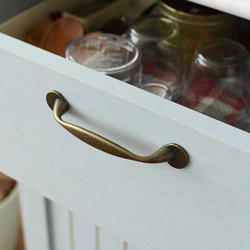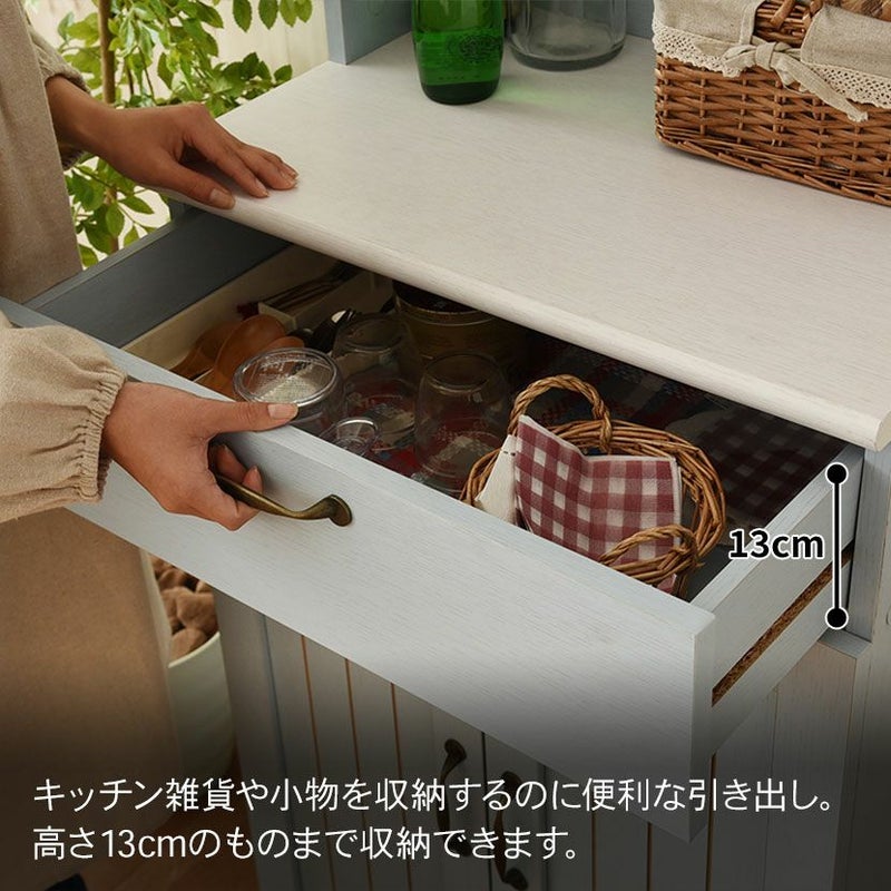 カントリー調の面材溝加工や優しい素材感と丸みのあるフォルムは、小さくても甘すぎないデザインです。