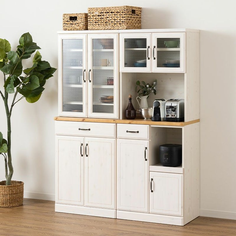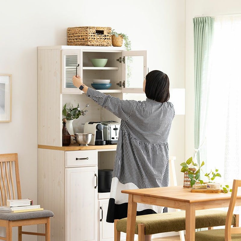 【設置無料】幅70cm 食器棚 日本製 木製 ガラス扉 スライド棚付き 引出し付き 収納 コンパクト レンジ台 キッチンボード カップボード おしゃれ フレンチカントリー ダイニング 白