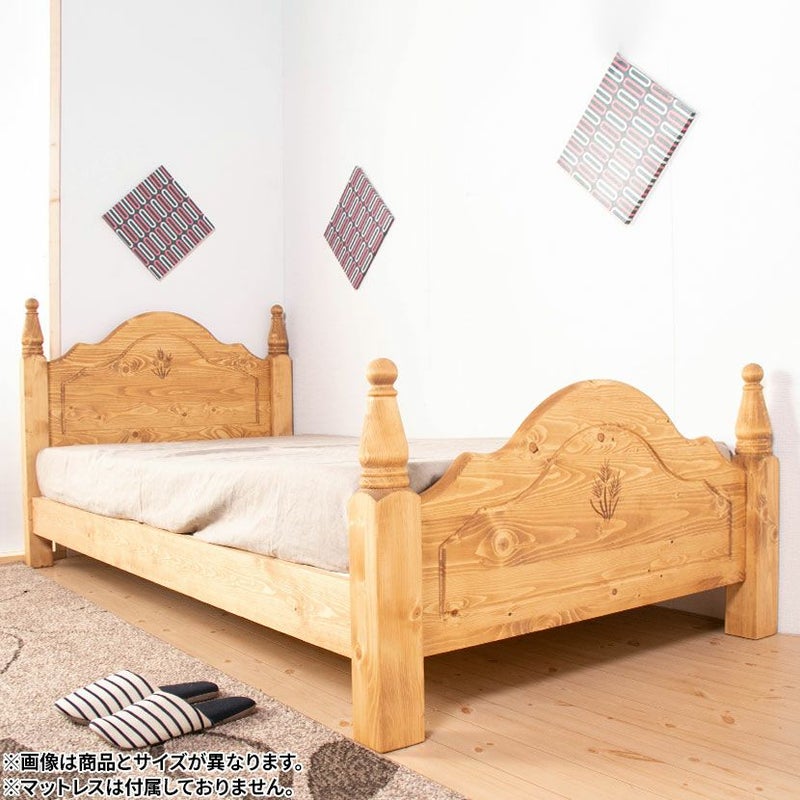 北欧パイン材を贅沢に使用した、セミダブルサイズのベッド。
