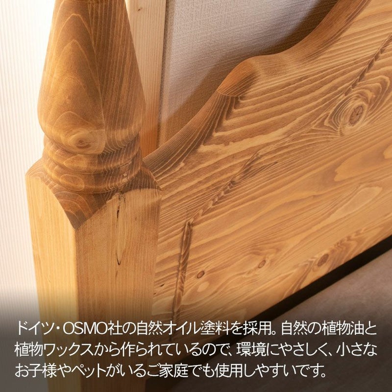 無垢の北欧パイン材に、穂の彫刻が特徴のファーマーシリーズ。懐かくそして温かみのあるカントリースタイルは癒しを与えてくれます。食品と同レベルの高い安全性を誇るドイツのOSMO社天然オイルを使用。審査基準の高いと言われているドイツで安心基準値をクリア。小さいお子様にも安心です。また使い込む程に、色が重なり風合いが出てくるのも楽しんで頂けたらと思います。