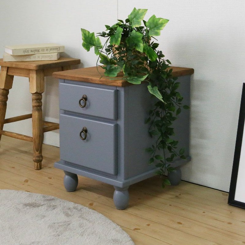 バイカラーが特徴のフレンチカントリーシリーズ、 ラベンダー。丸みを帯びたフォルムにアンティーク調の取っ手と細部にまでこだわり製作しています。パイン無垢材に素朴で淡いホワイト色の組合わせは、温かみのある優しいフレンチダイニング空間を演出してくれます。ラベンダーに近いブルーグレー色は、シックで甘すぎない高級感が漂うダイニング空間を演出してくれます。