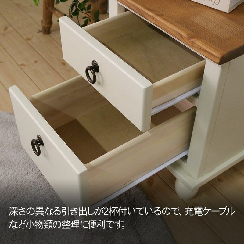 ●深さの異なる引き出しが2杯付いているので、充電ケーブルなど小物類の整理に便利です。