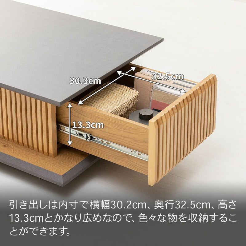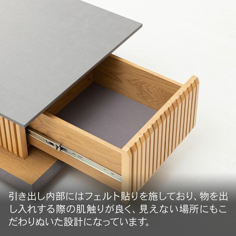 テーブルまわりの小物収納に便利な引き出しが2杯付いています。