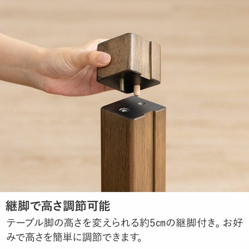 テーブル脚の高さを変えられる約5cmの継脚付き。お好みで高さを簡単に調節できます。