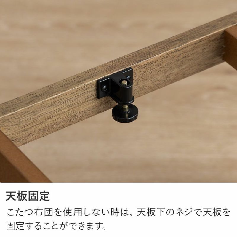 こたつ布団を使用しない時は、天板下のネジで天板を固定することができます。