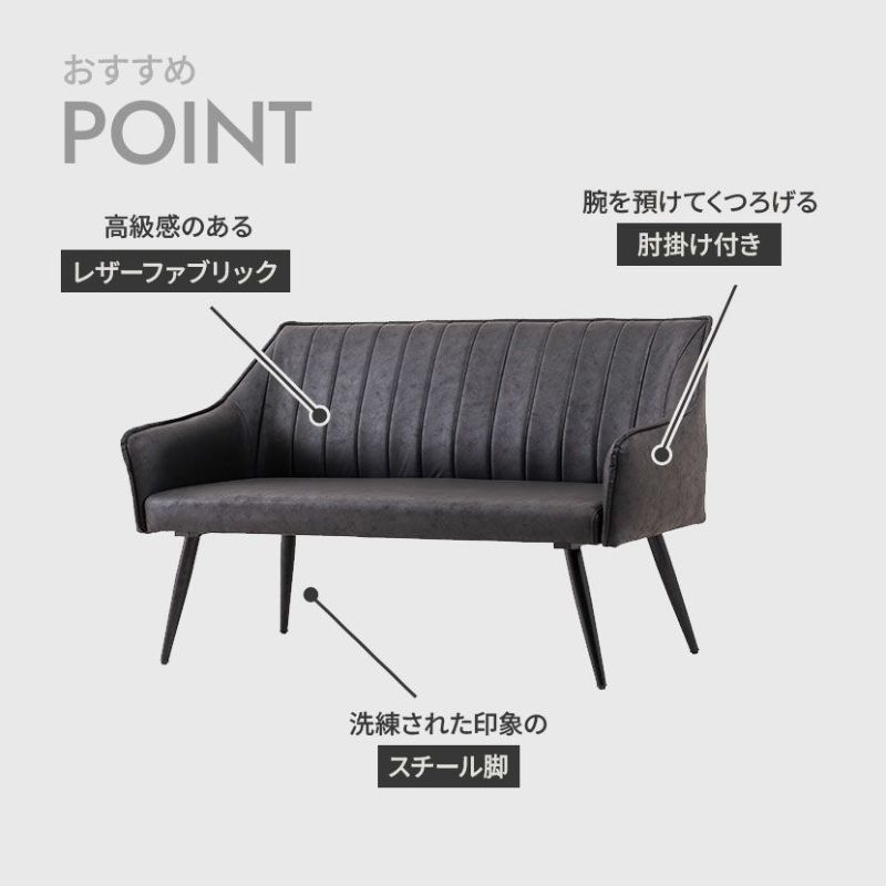 幅140cm 肘付 ダイニングベンチ レザーファブリック スチール脚 椅子 リビング椅子 食卓椅子 モダン チェア