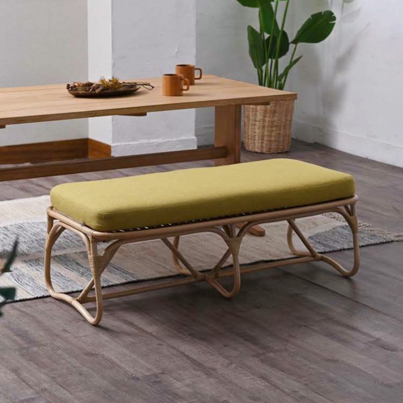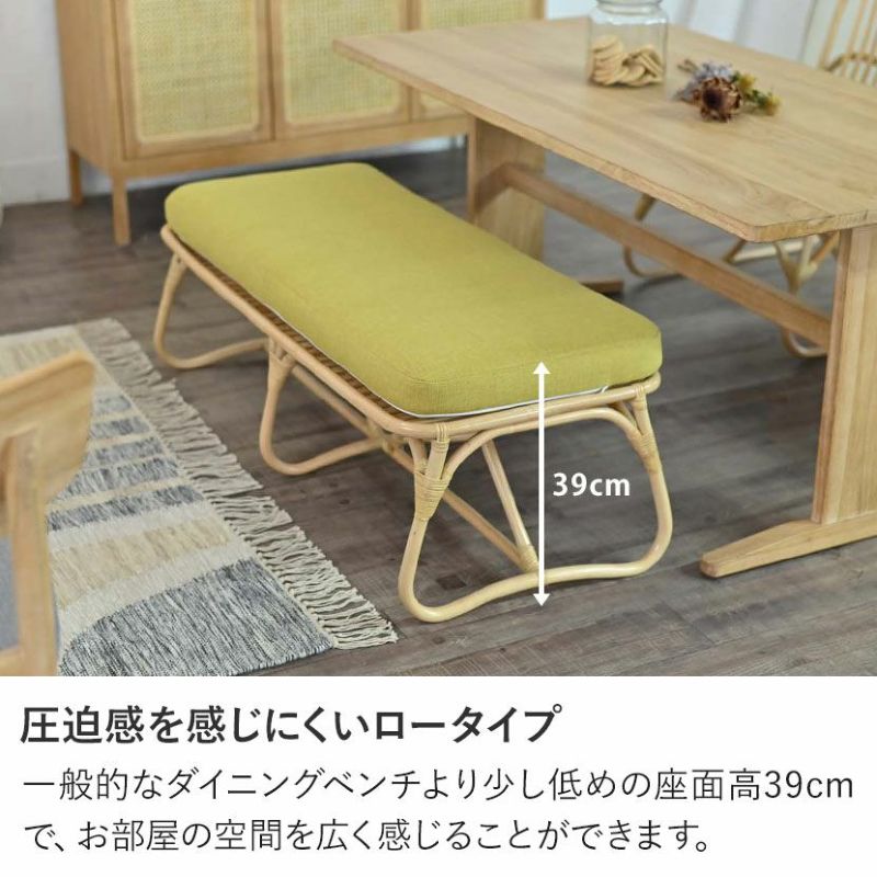 幅108cm 2人掛け ローベンチ CALM ファブリック ラタン ベンチ 長椅子 腰掛け 籐家具 ベンチチェア ダイニングベンチ おしゃれ ナチュラル 韓国 アジアン 和室 完成品