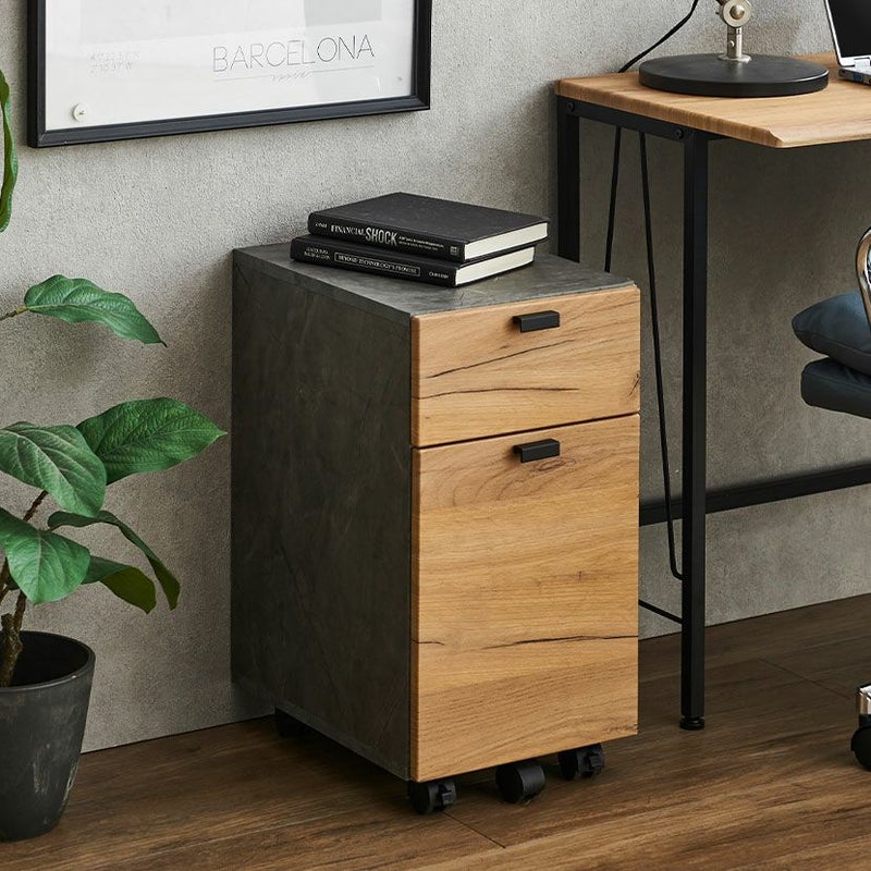 サイズの異なる2杯の引き出しが付いているので、小物や書類などを分けて収納できるワゴンです。