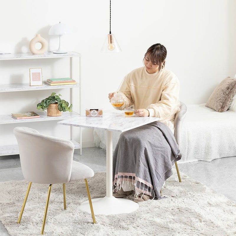 テーブルの脚は水・キズ・錆に強い粉体塗装仕上げ。マットな質感で上品に仕上げました。