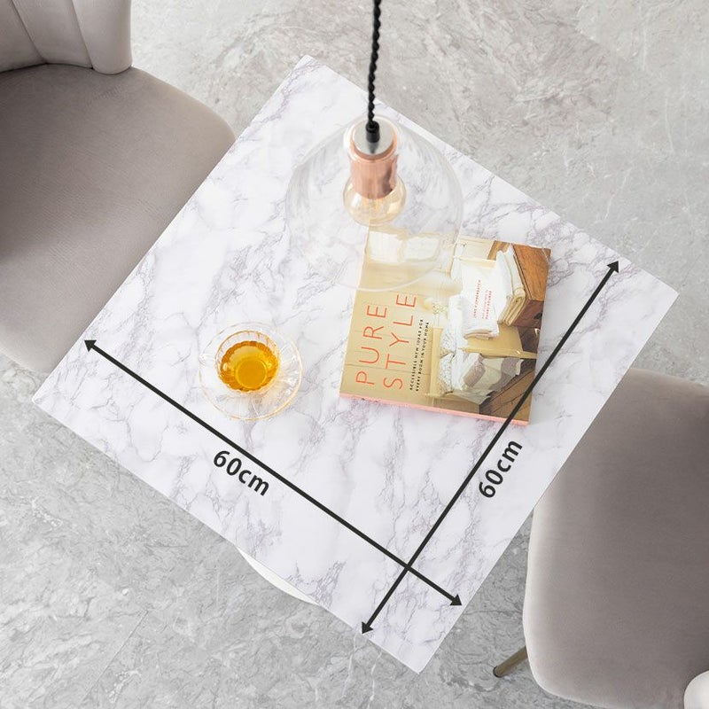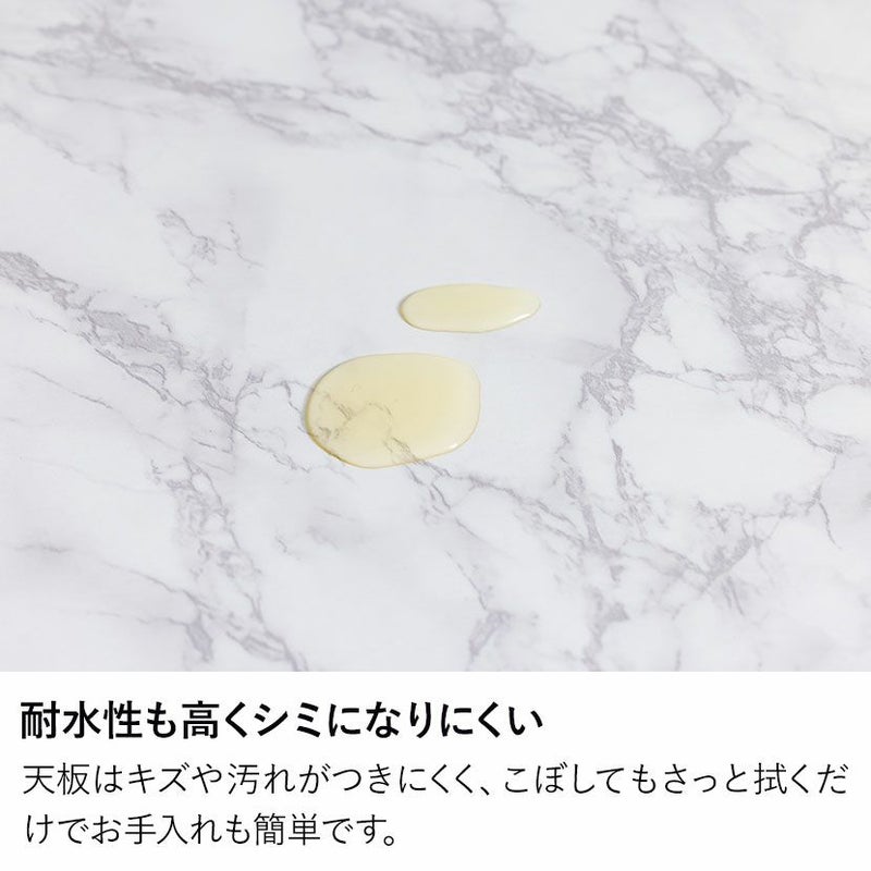 天板のホワイト大理石柄のシートは、ツヤのある綺麗な光沢感を表現しました。
