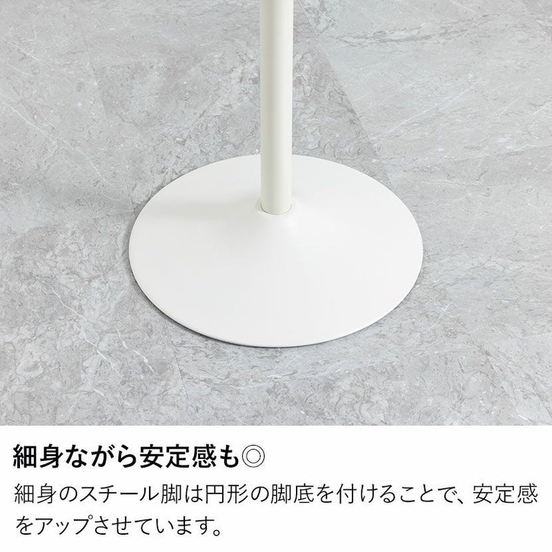 細身のスチール脚は円形の脚底を付けることで、安定感をアップさせています。