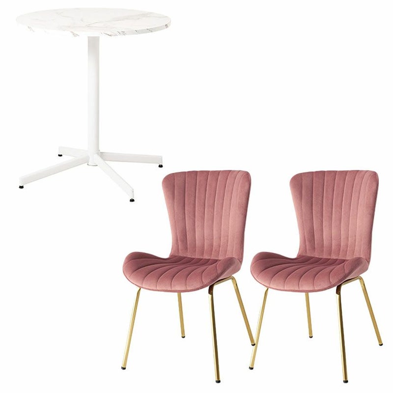 2人用 ダイニングテーブルセット 3点 大理石調 丸テーブル コンパクト 肘なし ダイニングチェア モダン おしゃれ かわいい エレガント カフェセット (幅65cm 円形 食卓テーブル×1 食卓椅子×2) クーポン対象 クーポン対象 送料無料 送料無料 ¥ 34,900 税込