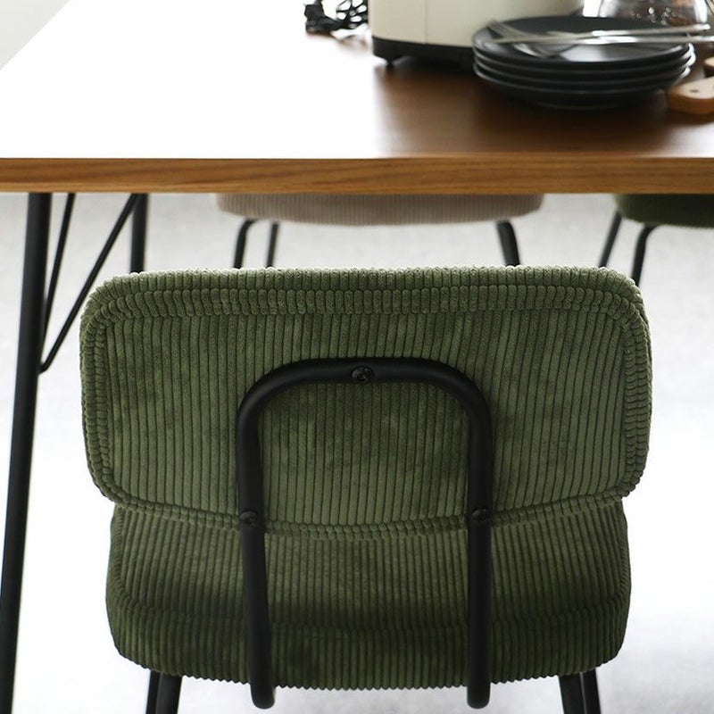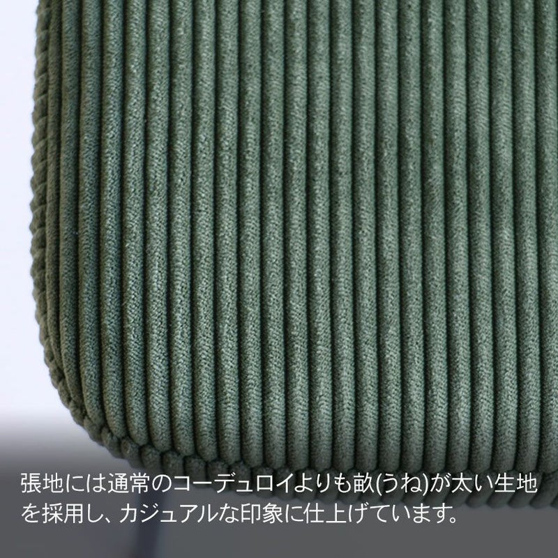 コーデュロイ×ブラックアイアンの組み合わせが特徴のチェア。