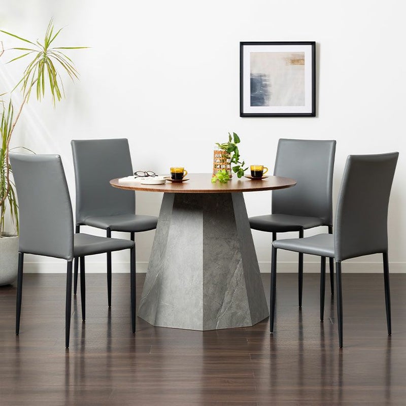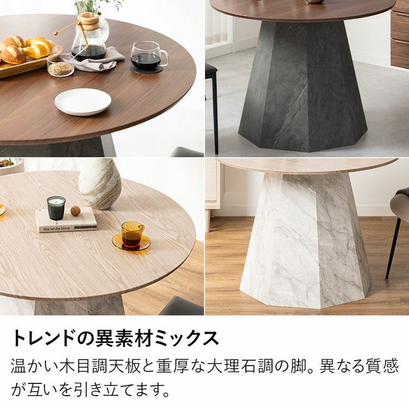 温かみのある木目調の天板と、重厚感のある大理石調の脚を組み合わせました。