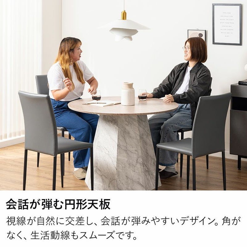 円形のテーブルは座った人の視線が自然に交差しやすく、会話が弾みやすいのが特長です。