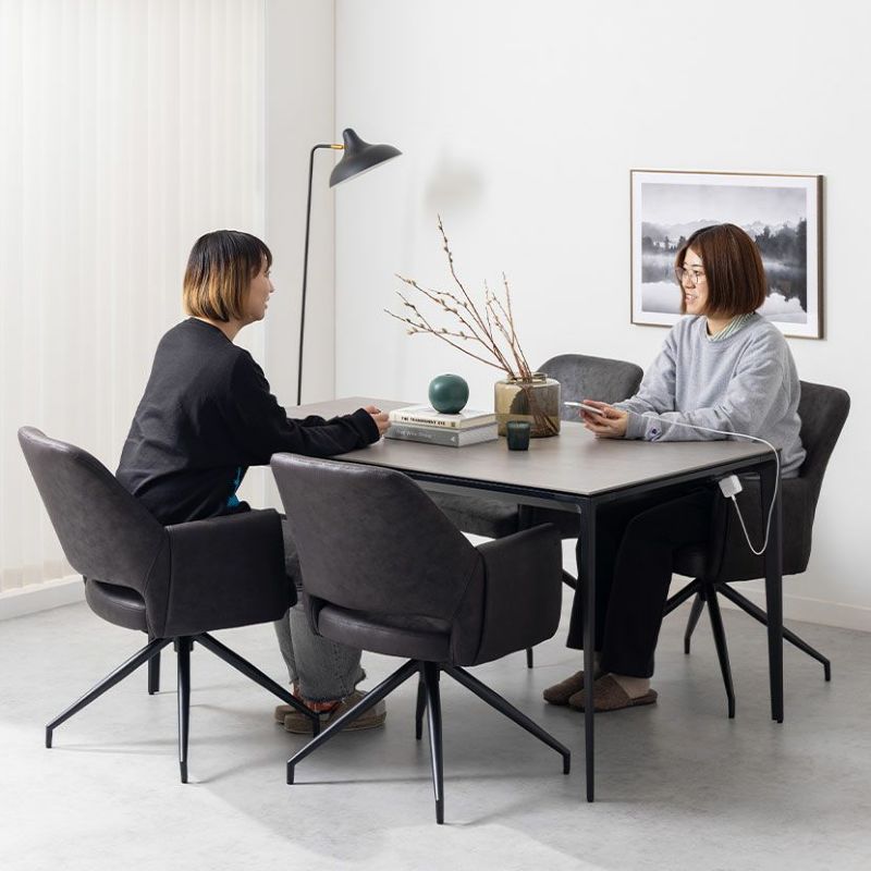 デザイン性だけでなく、回転機能による利便性も兼ね備えており、ダイニング空間をワンランク上の雰囲気へと導きます。