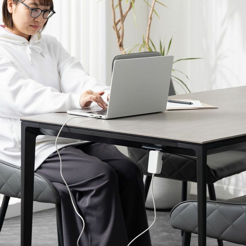 天板下には便利な2口コンセントを備えています。スライドカバー仕様でホコリが入りにくいです。