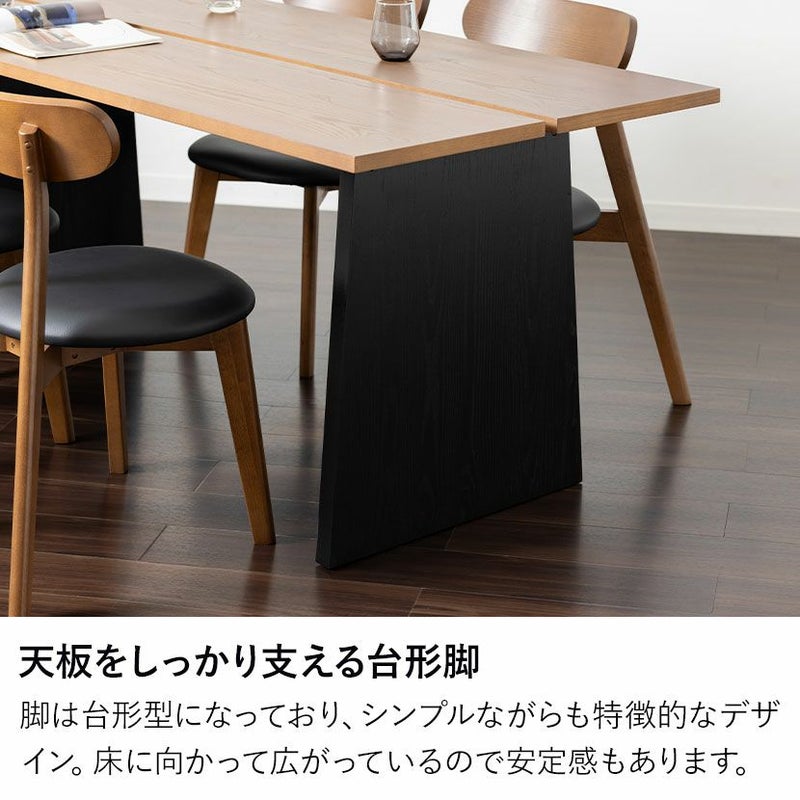 脚部には、モダンな印象を与える台形デザインを採用しました。 床に向かって広がる形状は、視覚的な安定感だけでなく、実際に天板をしっかりと支える構造的な強さを兼ね備えています。シンプルながらも、横から見た時のシルエットが美しく、飽きのこないデザインです。