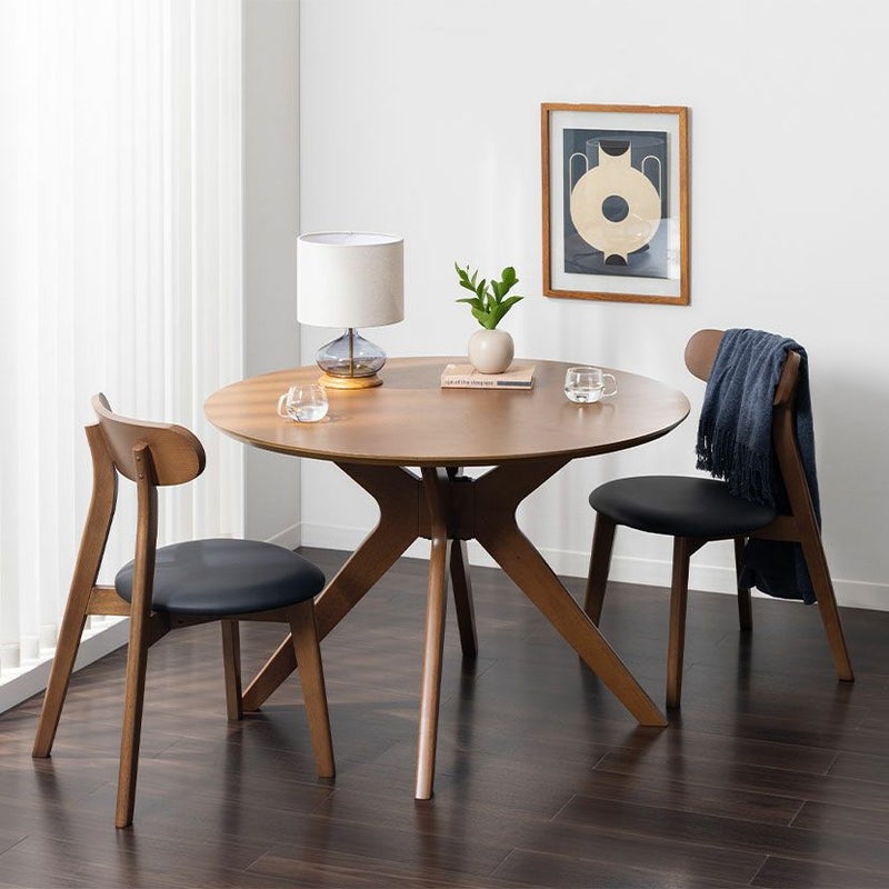角のない円形天板が、お部屋に柔らかな印象を与えるラウンドテーブルのダイニングセット。天然木の豊かな表情を楽しみながら、お手入れのしやすさも妥協したくない。そんな願いを叶える、機能美に優れた一台です。