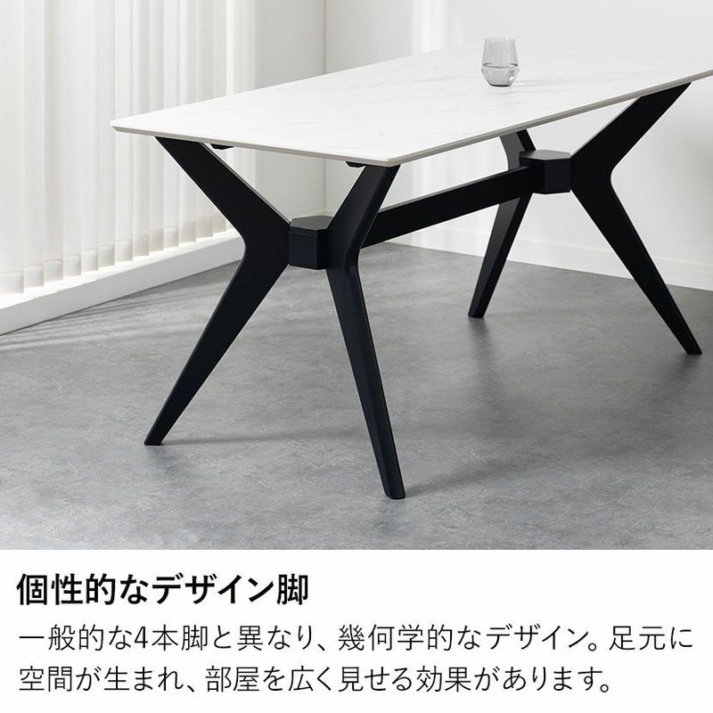 一般的な4本脚とは違い、彫刻的で美しい幾何学的なデザイン脚。複雑に組み合わさった脚部は足元に大きな空間(余白)を生み出します。視線が奥まで抜けるため、存在感がありながらもお部屋を広く、開放的に見せる効果があります。