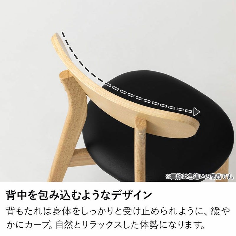 背もたれには、身体のラインに沿うような緩やかなカーブを施しました。座った瞬間に背中をそっと包み込み、自然とリラックスした姿勢へと導きます。お食事の時間はもちろん、食後のティータイムや読書など、長い時間座っていても疲れにくい設計です。