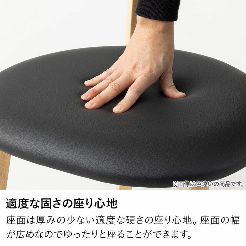 座面には、撥水性に優れたPVC(合成皮革)レザーを採用しました。飲み物や食べ物をうっかりこぼしてしまっても、染み込みにくく、乾いた布でサッと拭き取るだけでお手入れが簡単です。汚れに強いため、小さなお子様やペットのいるご家庭でも、気兼ねなく毎日お使いいただけます。