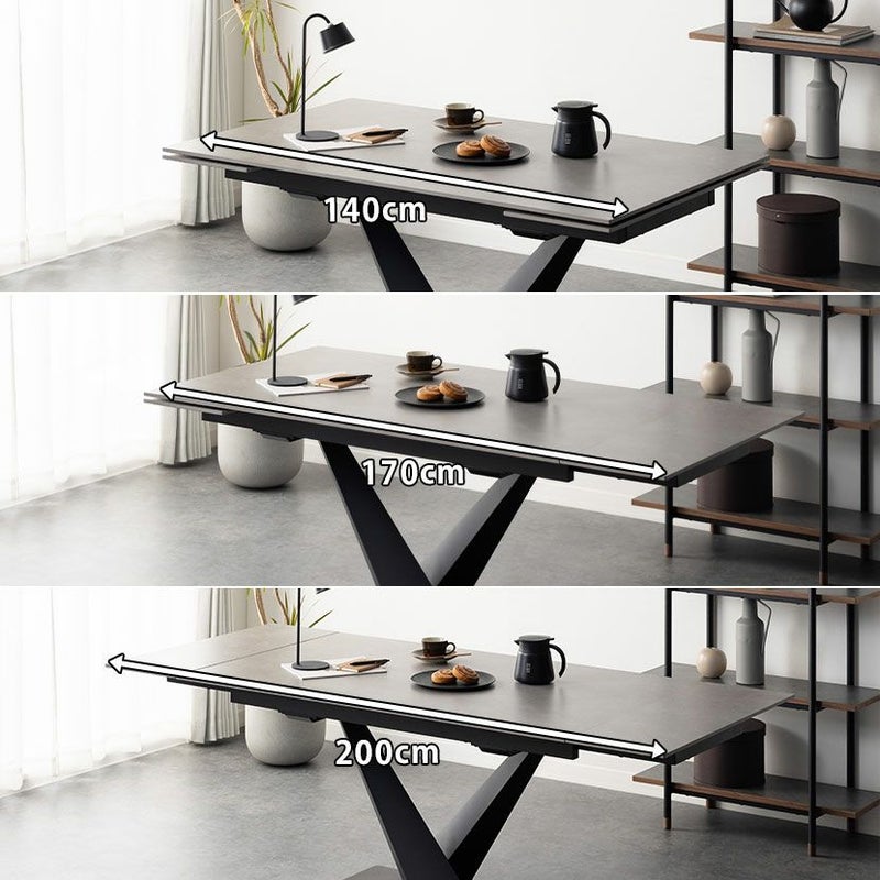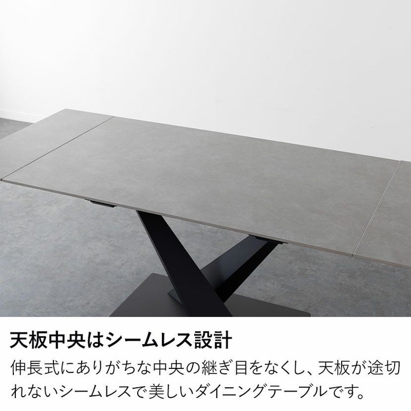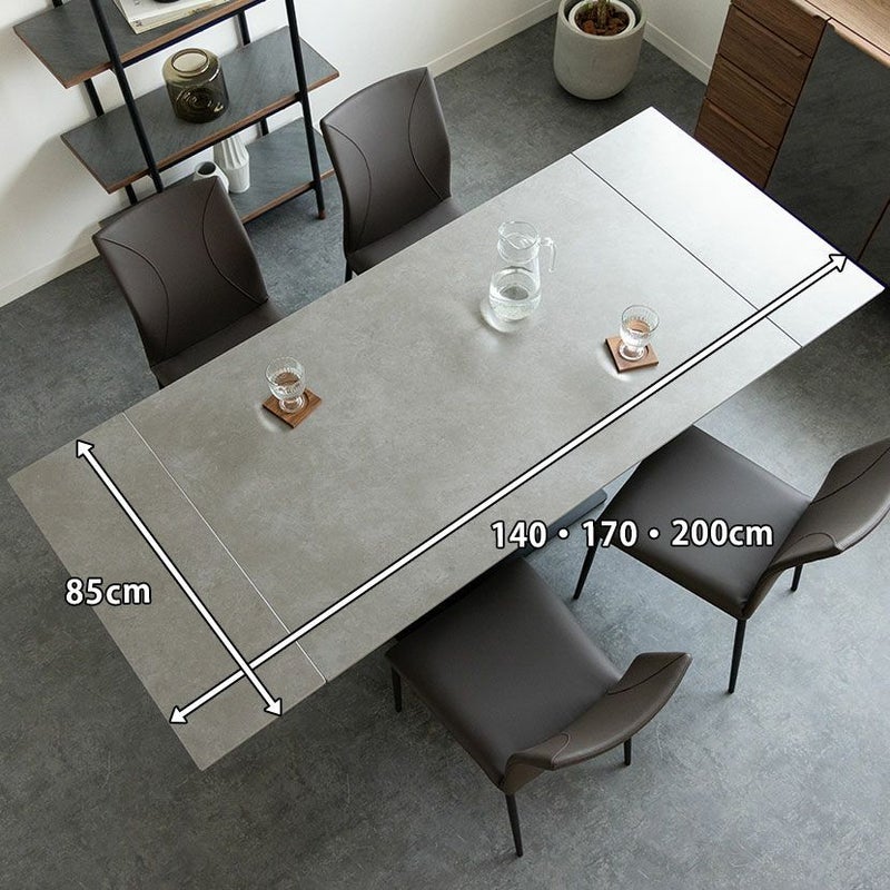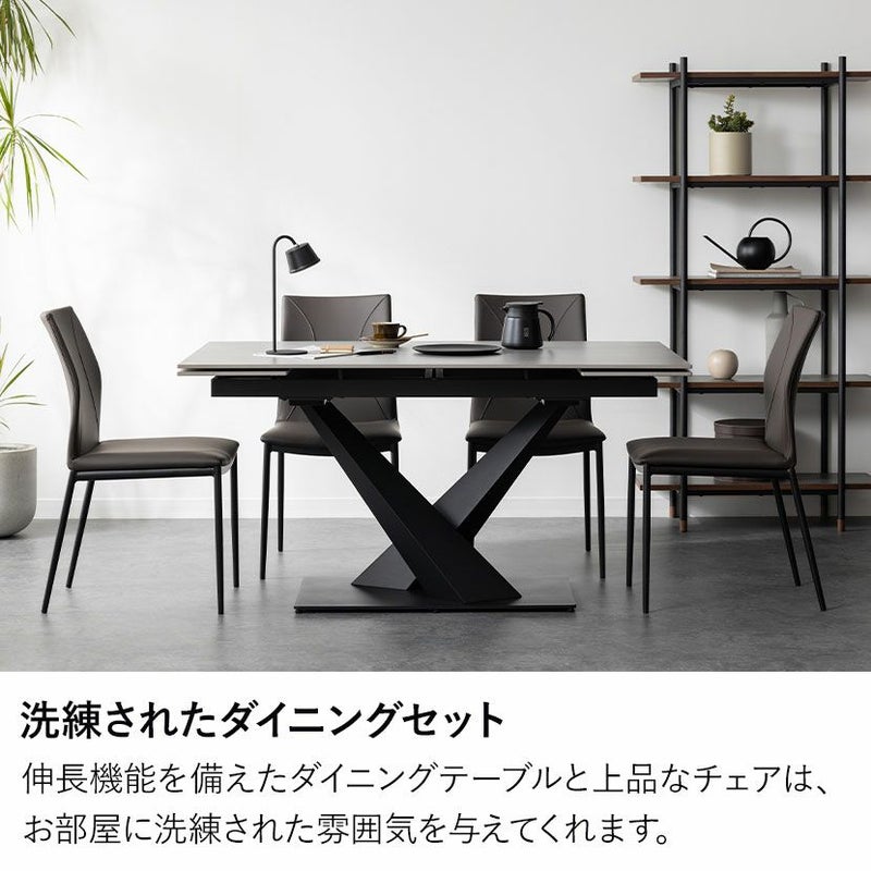 【設置無料】4人用 伸長式 ダイニングテーブルセット 5点 セラミックテーブル 4~6人掛け モダン オシャレ グレー ブラック (幅140cm 幅200cm 食卓テーブル×1 食卓椅子×4)