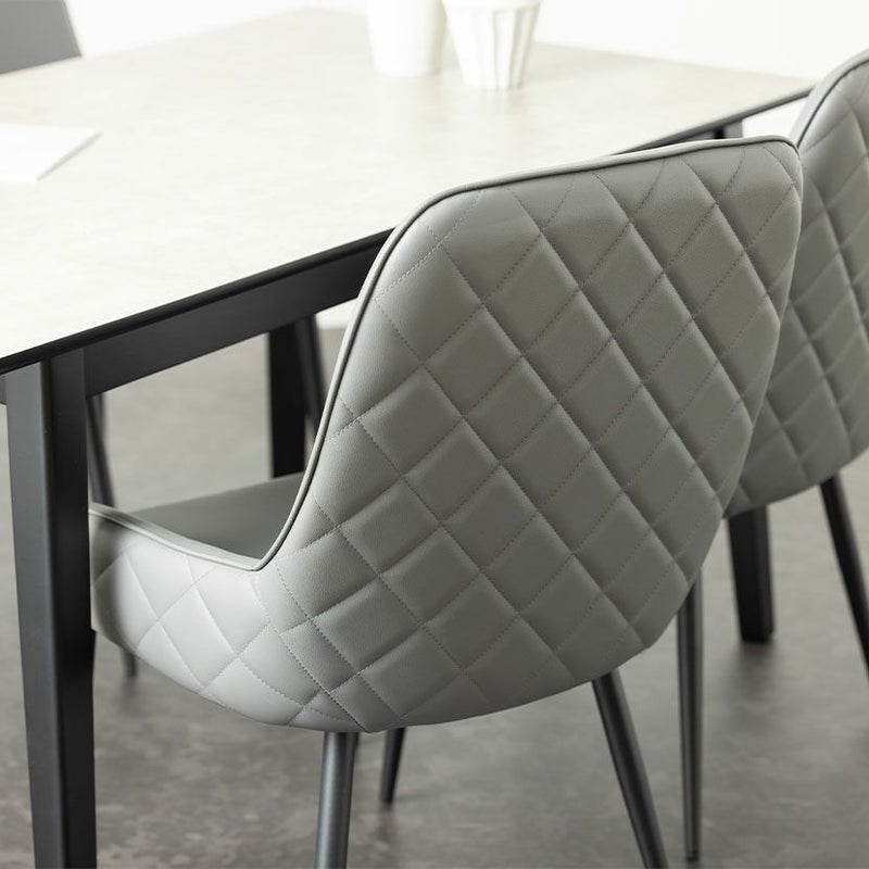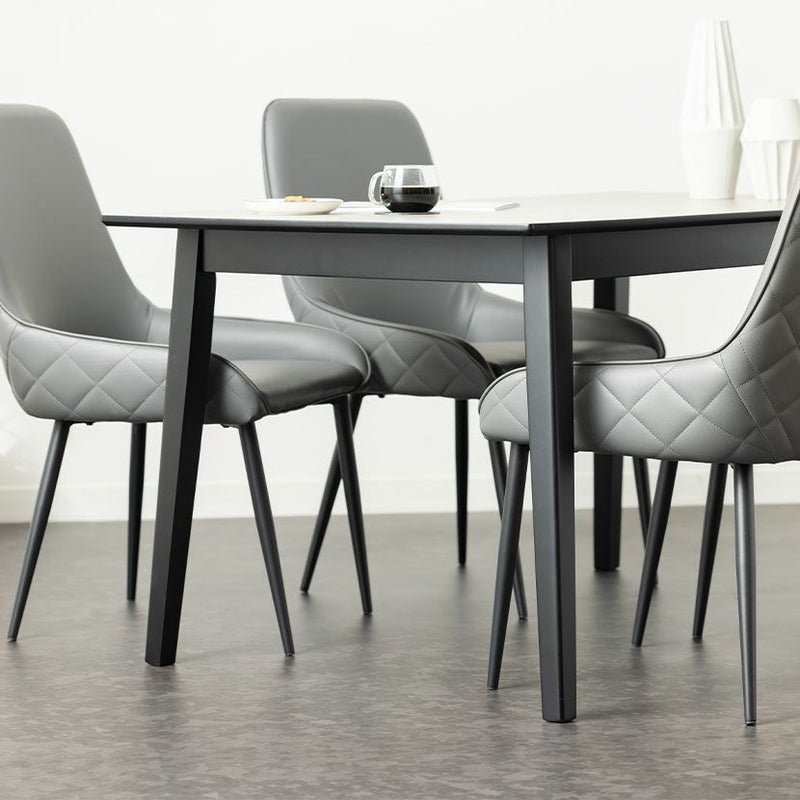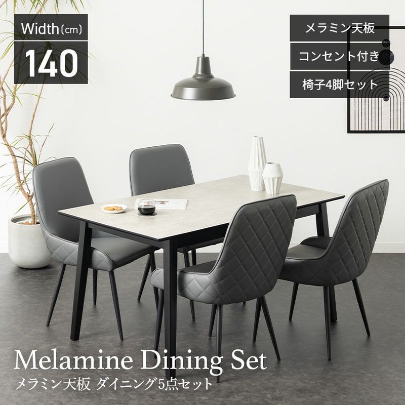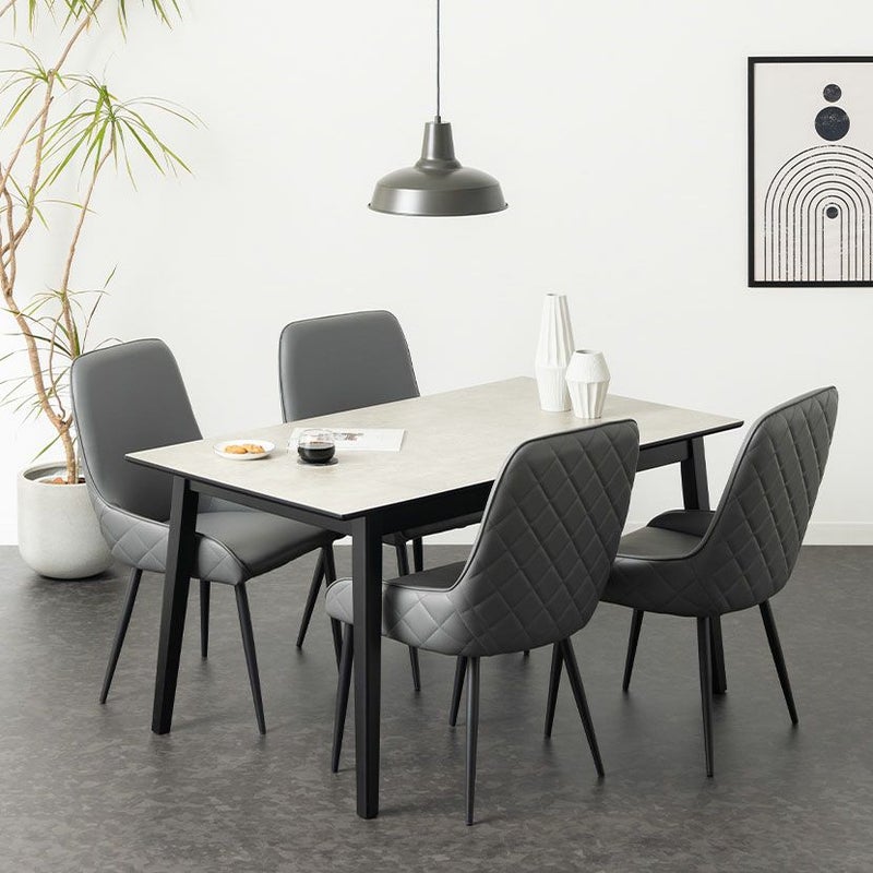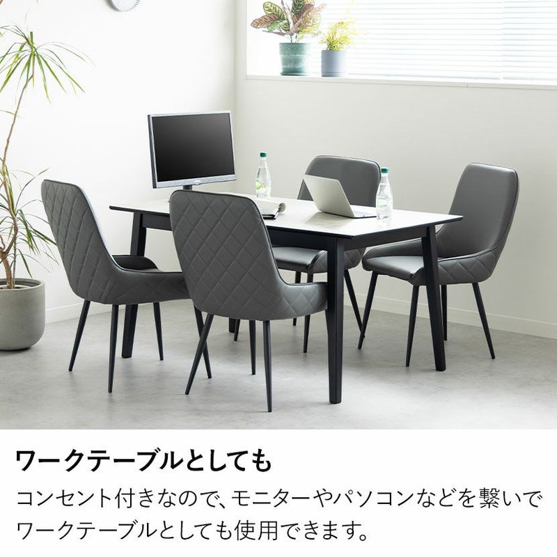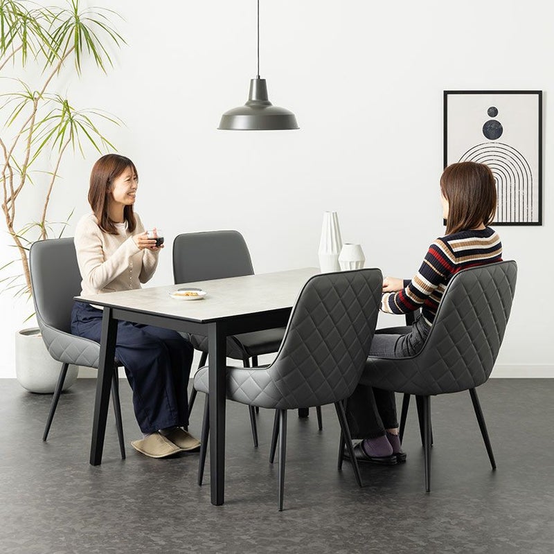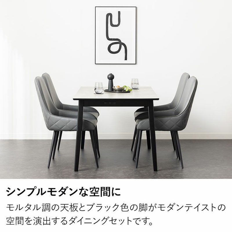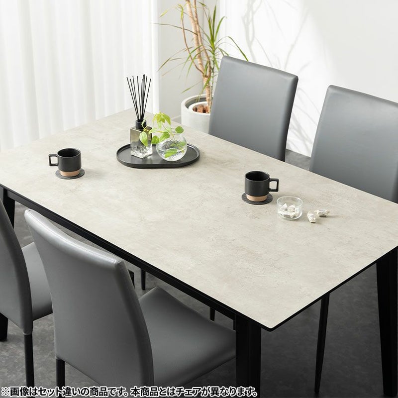 モルタル調の天板とブラック色の脚がモダンテイストの空間を演出するダイニングセットです。