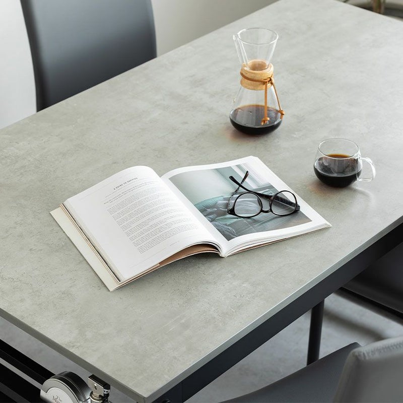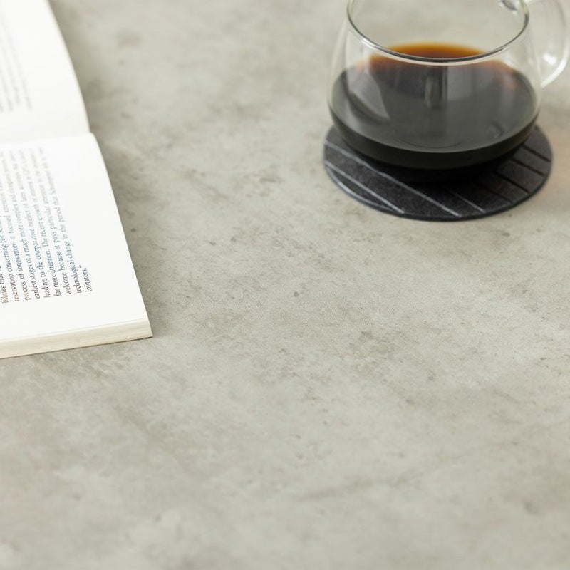 モルタル調の天板には耐久性・耐熱性に優れたメラミンを使用。汚れても簡単に拭き取れ、お手入れも簡単です。