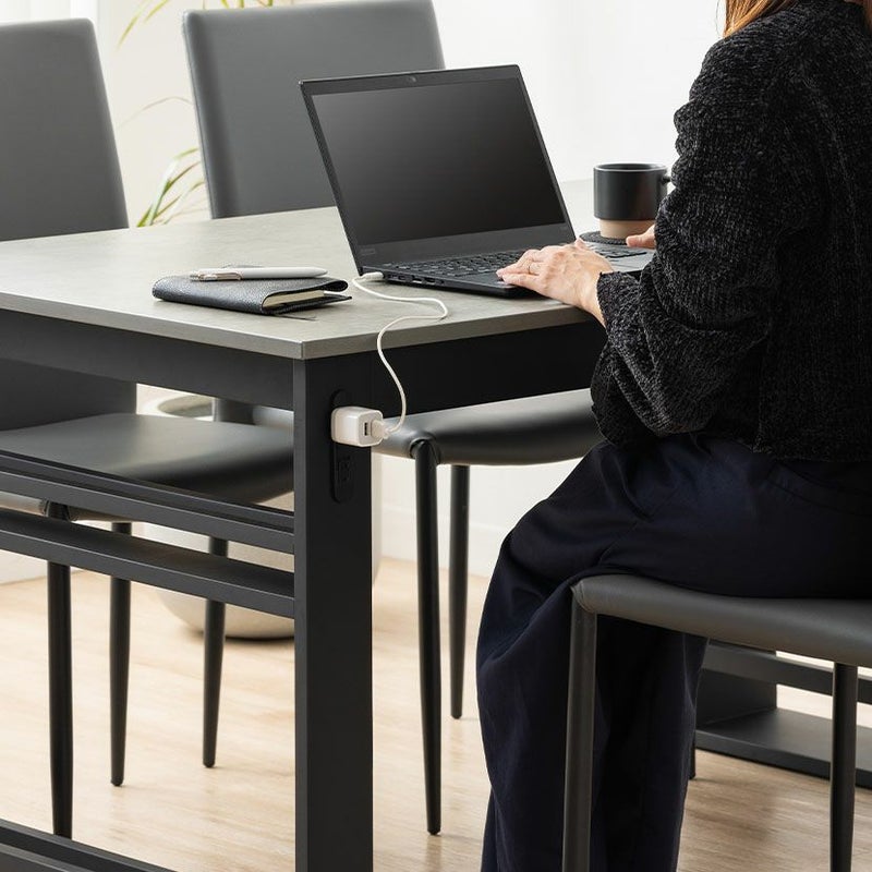 コンセント付きなので、モニターやパソコンなどを繋いでワークテーブルとしても使用できます。