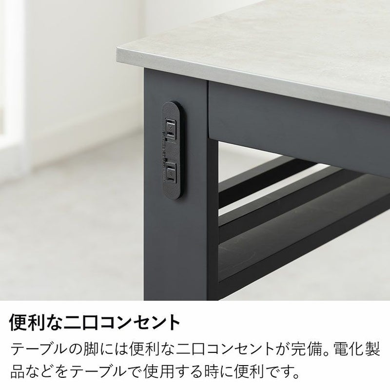 テーブルの幕板には便利な二口コンセントが完備。電化製品などをテーブルで使用する時に便利です。