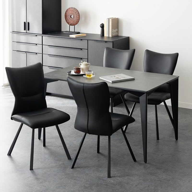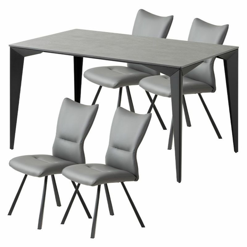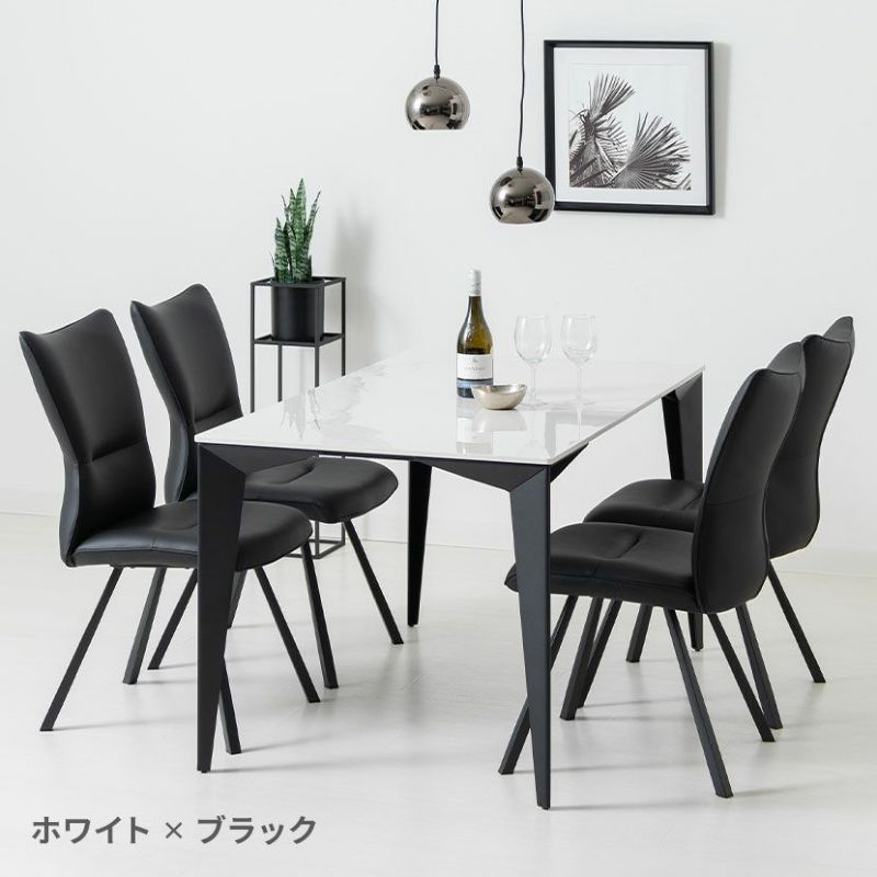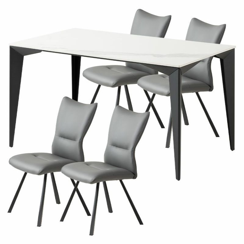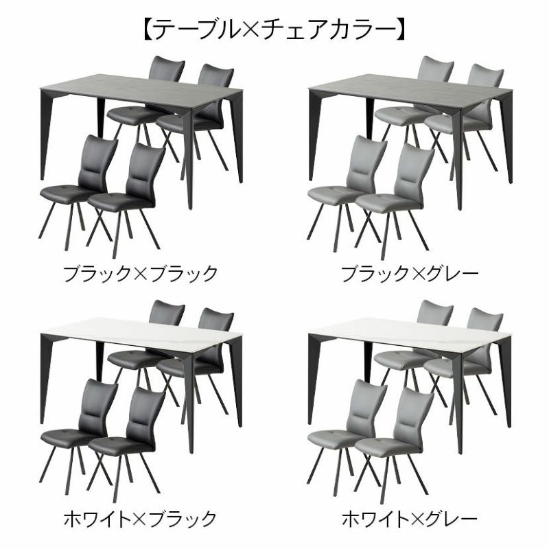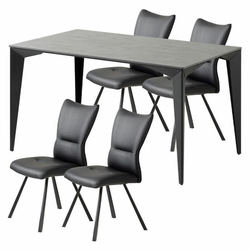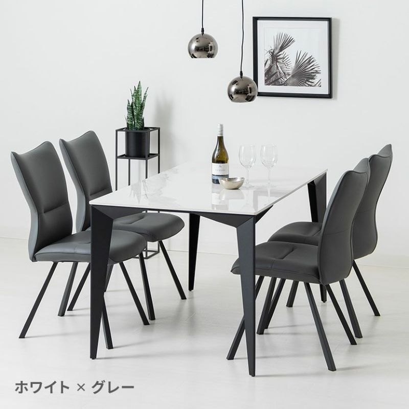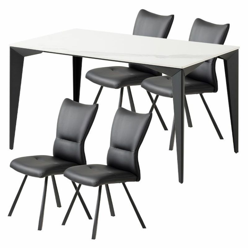【設置無料】4人用 ダイニングテーブルセット 5点 セラミックテーブル スチール脚 合皮 ダイニングチェア モダン おしゃれ (幅135cm 食卓テーブル×1 食卓椅子×4)