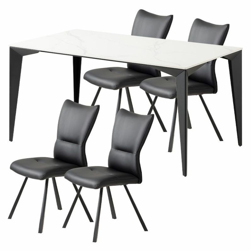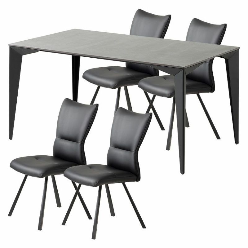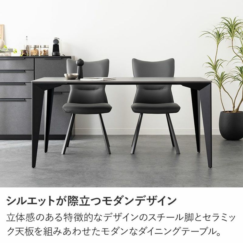 立体感のある特徴的なデザインのスチール脚とセラミック天板を組みあわせたモダンなダイニングテーブル。