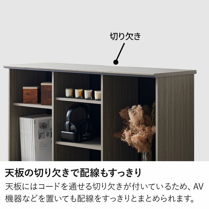 天板にはコードを通せる切り欠きが付いているため、AV機器などを置いても配線をすっきりとまとめられます。