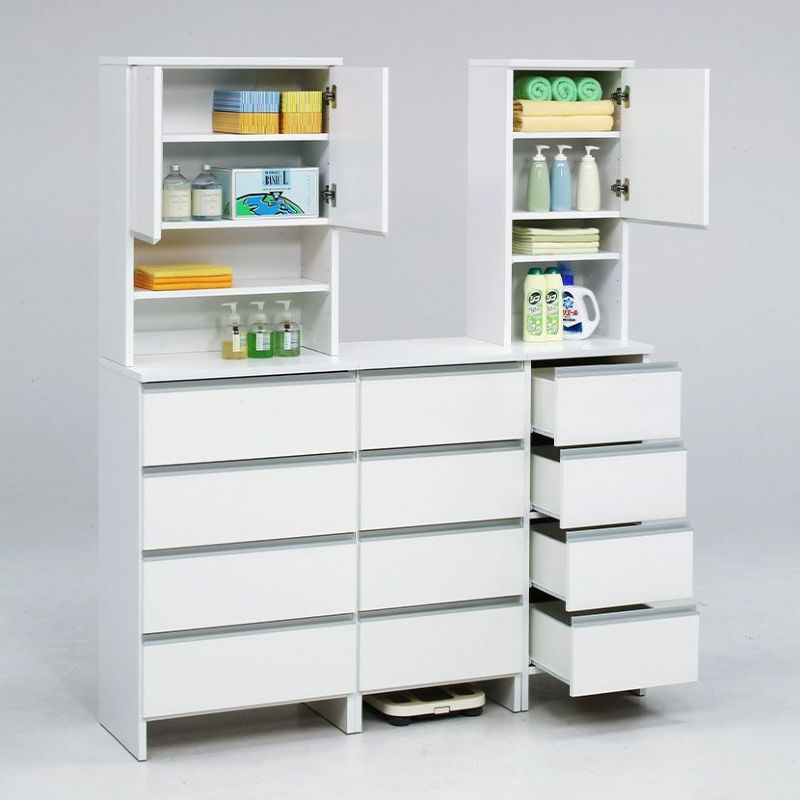 ●両開き扉とオープン部に各1枚付いているので、洗濯洗剤など、収納物のサイズに合わせて高さ調節することができます。