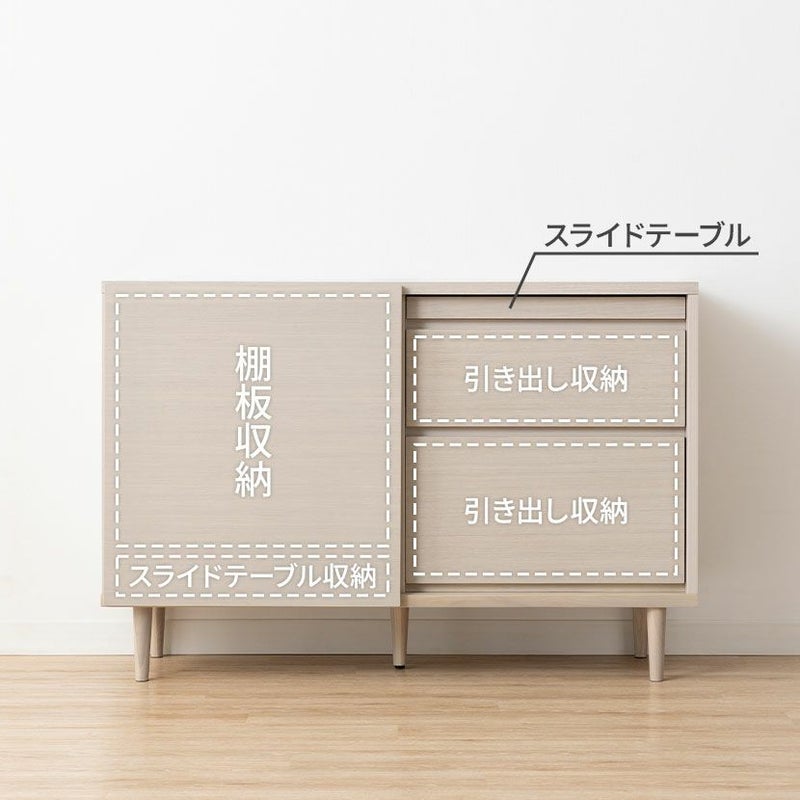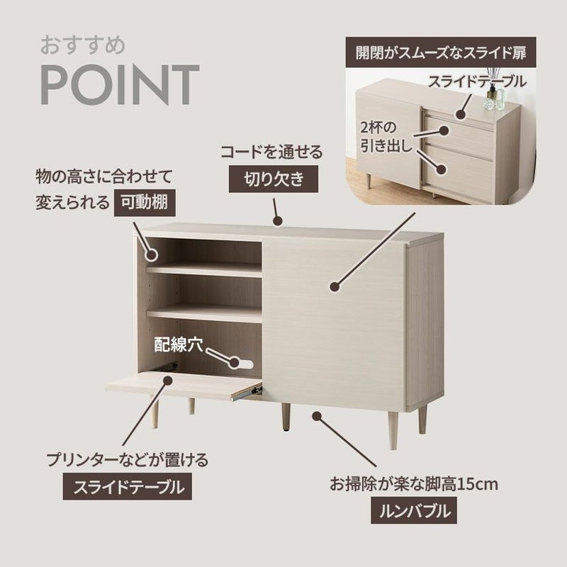 スライド扉内の最下段には、プリンターなどの収納に便利なスライドテーブルが付いています。