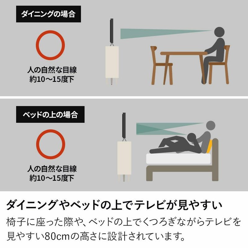 椅子に座って食事をする際や、ベッドでくつろぎながらテレビを見るのにちょうど良い高さ80cmに設計されています。
