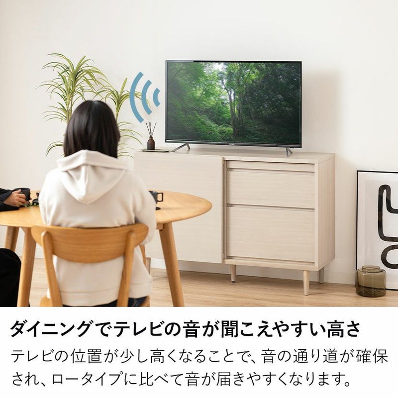 テレビの位置が少し高くなることで、音の通り道が確保され、低いタイプのテレビ台に比べて音が届きやすくなります。