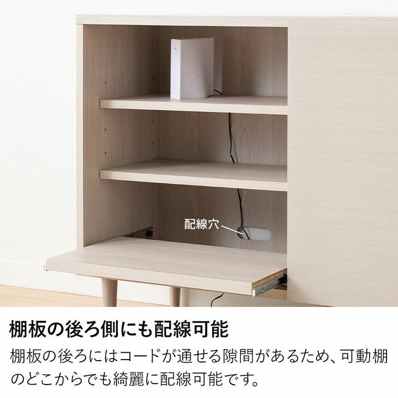 棚板の後ろにはコードを通せる隙間があるため、可動棚のどこからでもコードをすっきりと配線できます。