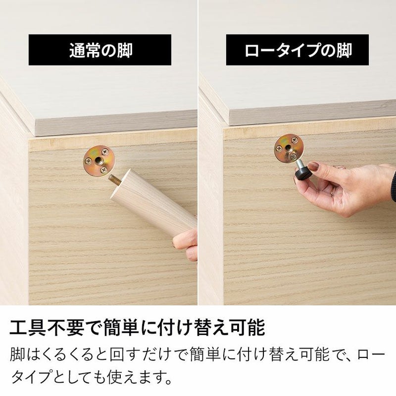 脚は回すだけで簡単に付け替えられるため、特別な工具は不要です。