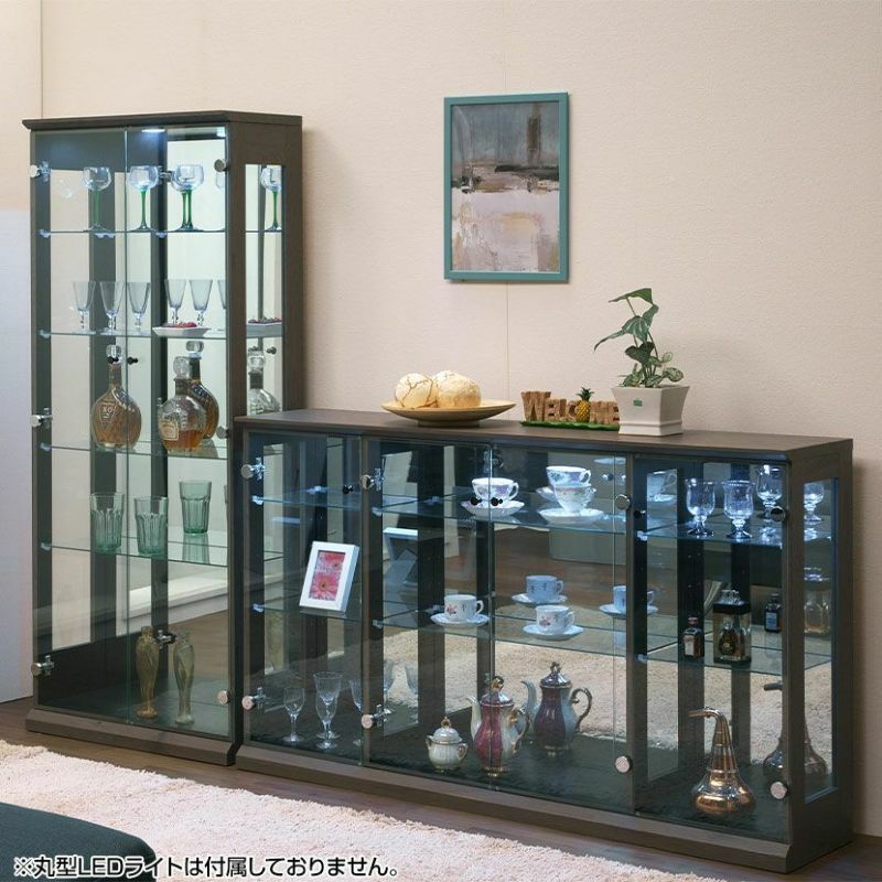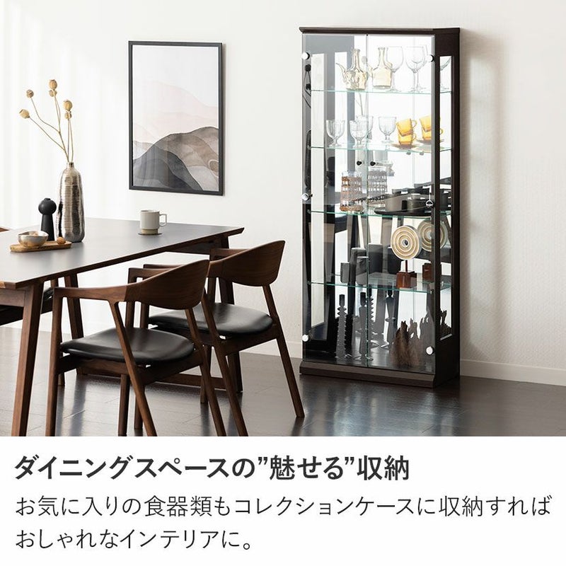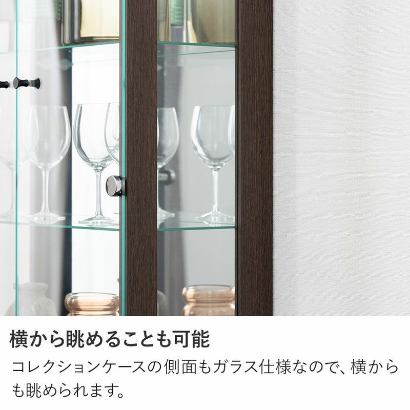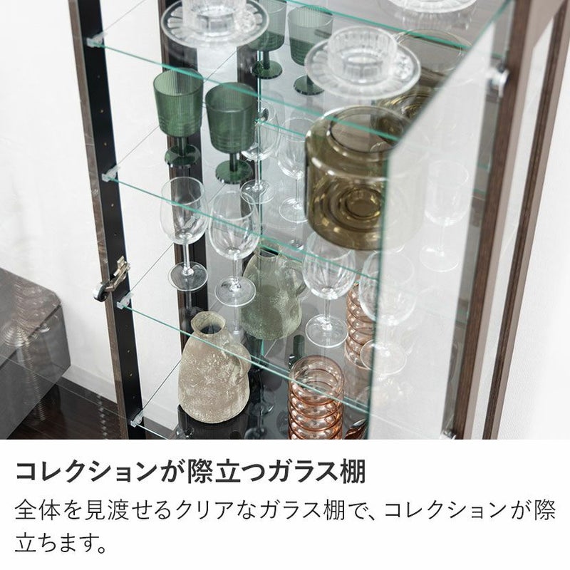全体を見渡せるクリアなガラス棚で、コレクションが際立ちます。