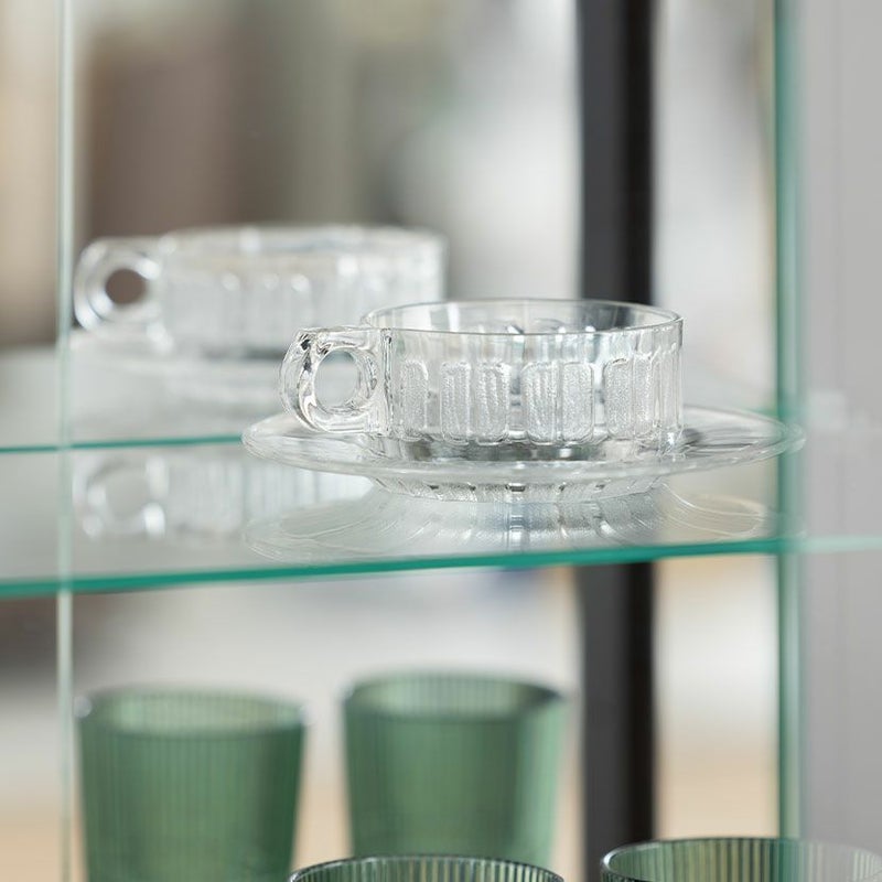 お気に入りの食器類もコレクションケースに収納すればおしゃれなインテリアに。