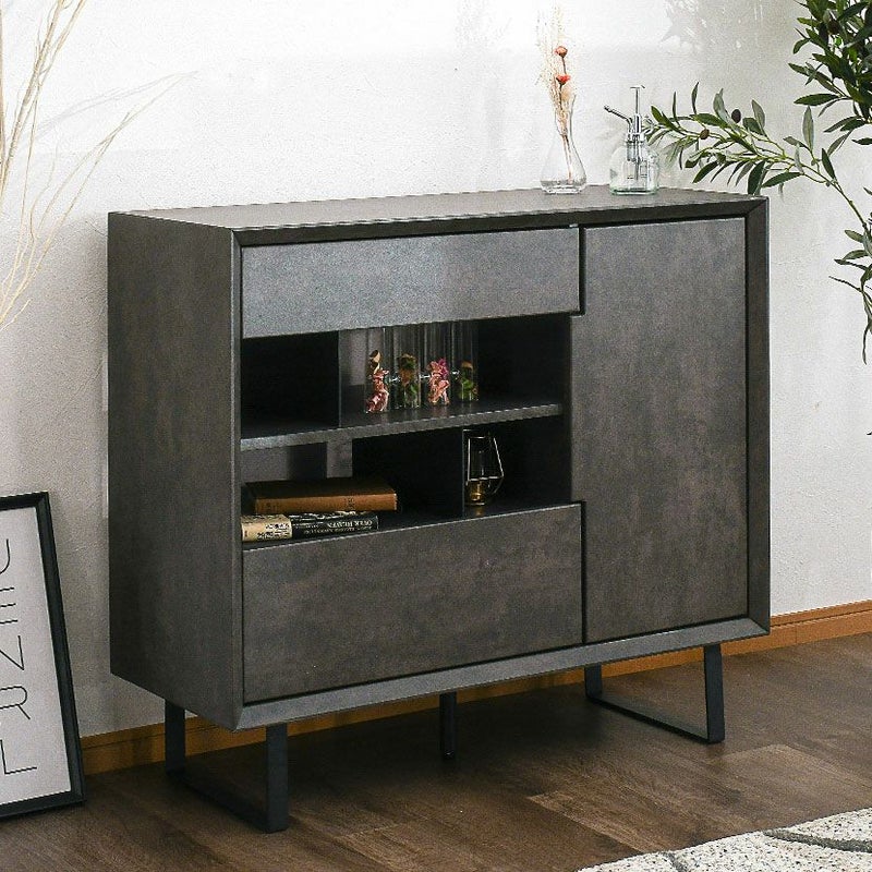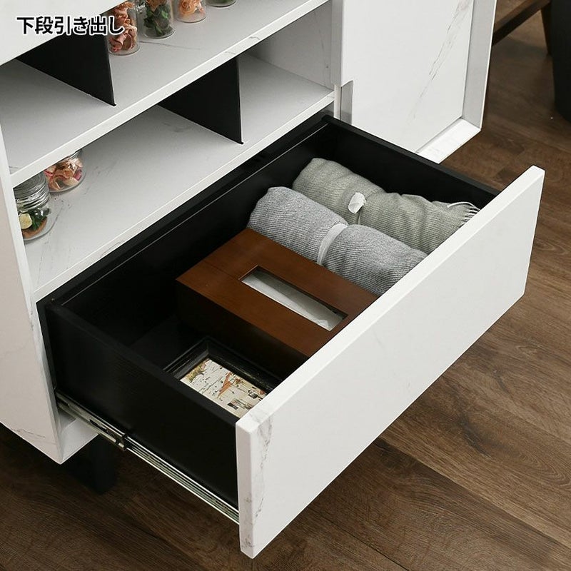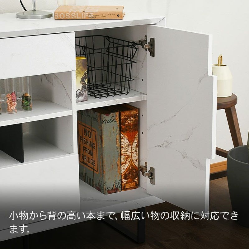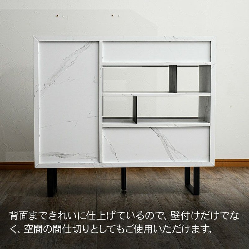 【設置無料】幅90cm サイドボード 大理石調 収納 引き出し 開き扉 脚付き ラック リビングボード リビング収納 間仕切り キャビネット おしゃれ モダン 白 ホワイト グレー ルンバブル
